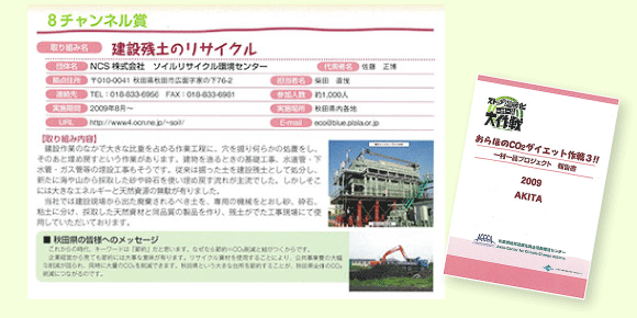 全国で行う「ストップ温暖化大作戦 〜CO2削減『一村一品プロジェクト』〜」の、秋田県代表の取組みとして、「おらほのCO2ダイエット作戦!!」が開催され、2009年にソイルリサイクル環境センターの取組みが紹介されました。